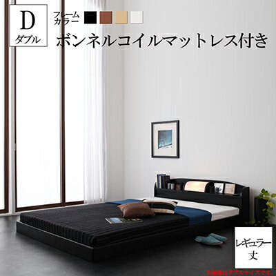 送料無料 ローベッド フロアベッド ダブル コンセント付き 棚付き プレミアムボンネルコイルマットレス付き ダブルベッド ベッド ベット bed フロアーベッド ローベット 低いベッド 一人暮らし 木製 Lucious ルーシャス ダークブラウン