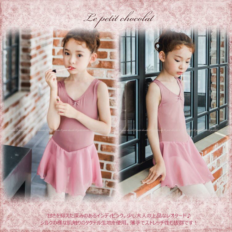 メール便OK バレエ レオタード スカート付 ノースリーブ 袖なし インディ ピンク 6502 ストレッチ 子供 キッズ ジュニア 女の子 バレエ用品 100cm 110cm 120cm 130cm 140cm 【あす楽】