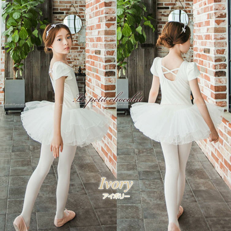 バレエ レオタード チュチュ スカート付 半袖 ホワイト 白 ブラック 黒 ピンク パープル 7503 子供 ジュニア 女の子 バレエ用品 90cm 100cm 110cm 120cm 130cm 140cm 【あす楽】