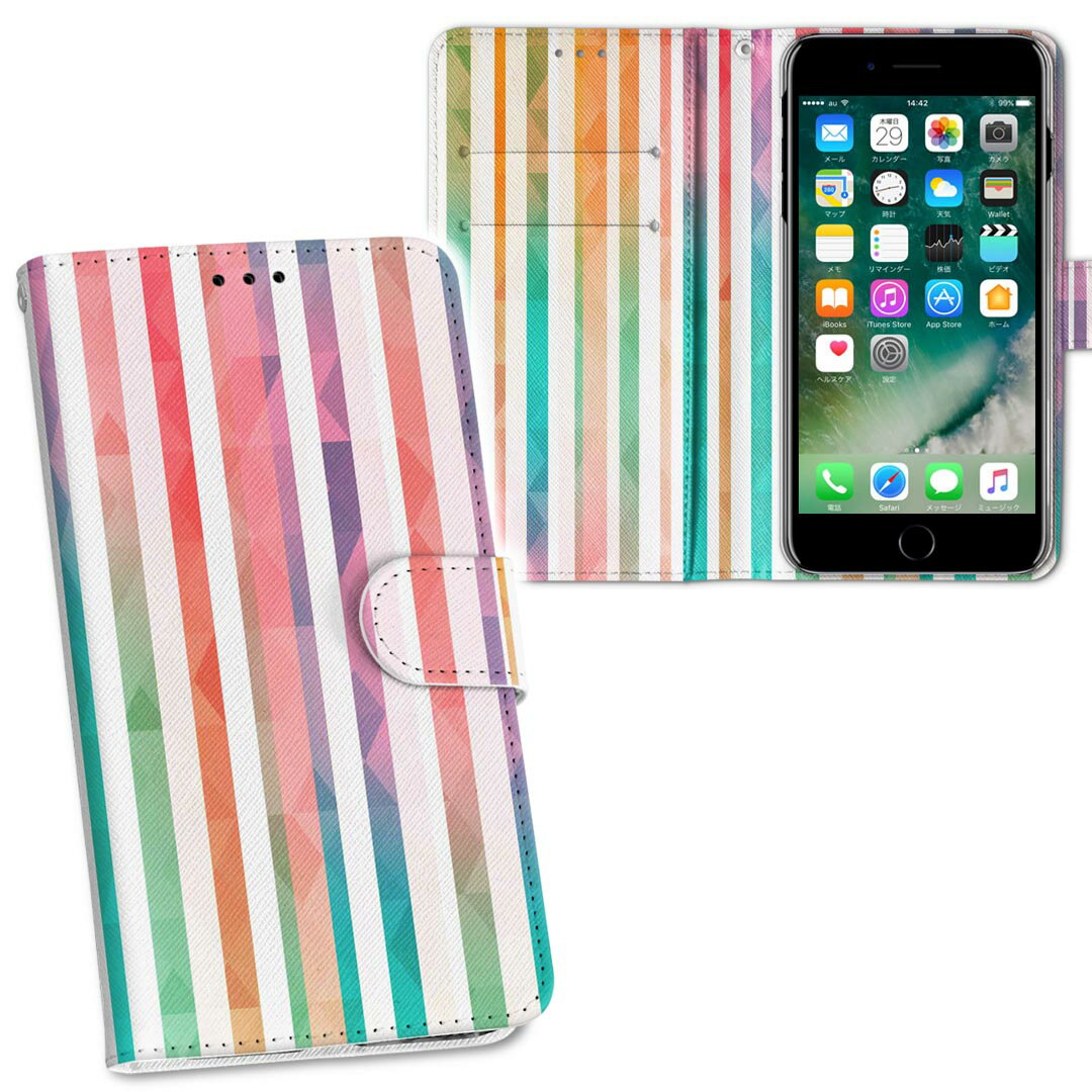 SCV39 Galaxy S9+ ギャラクシー エスナインプラス au エーユー scv39 両面プリント 裏表 内側 内面 スマホ カバー レザー ケース 手帳タイプ フリップ ダイアリー 二つ折り 革 フルデザイン 012357 ストライプ カラフル レインボー
