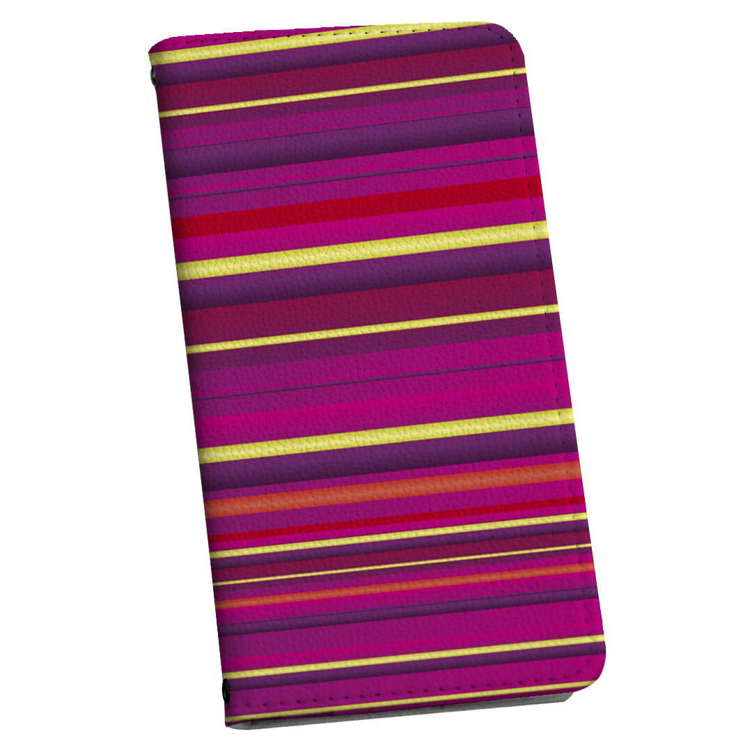 Android One S2 Android One アンドロイド ワン au エーユー 手帳型 スマホ カバー カバー レザー ケース 手帳タイプ フリップ ダイアリー 二つ折り 革 チェック・ボーダー ボーダー ピンク 002052